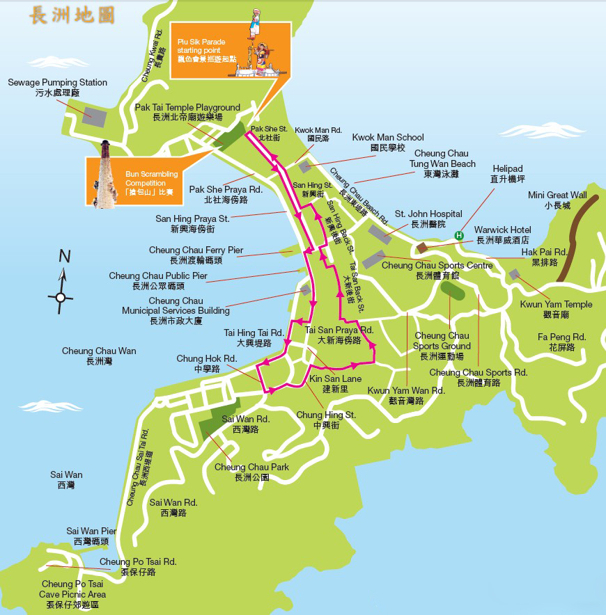 而長洲太平清醮除了有搶包山外,另一重頭戲就是飄色巡遊。要預訂一間合適的度假屋就必須清楚巡遊路線及搶包山的地點。