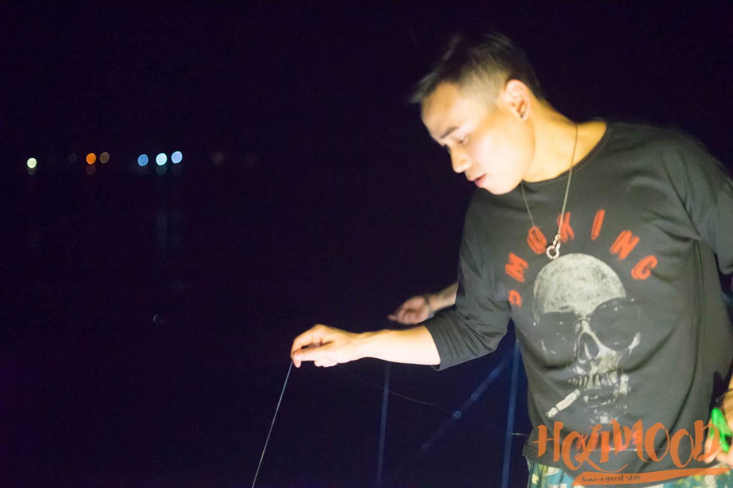 有節奏咁上下chok,扮餌引墨魚上釣。