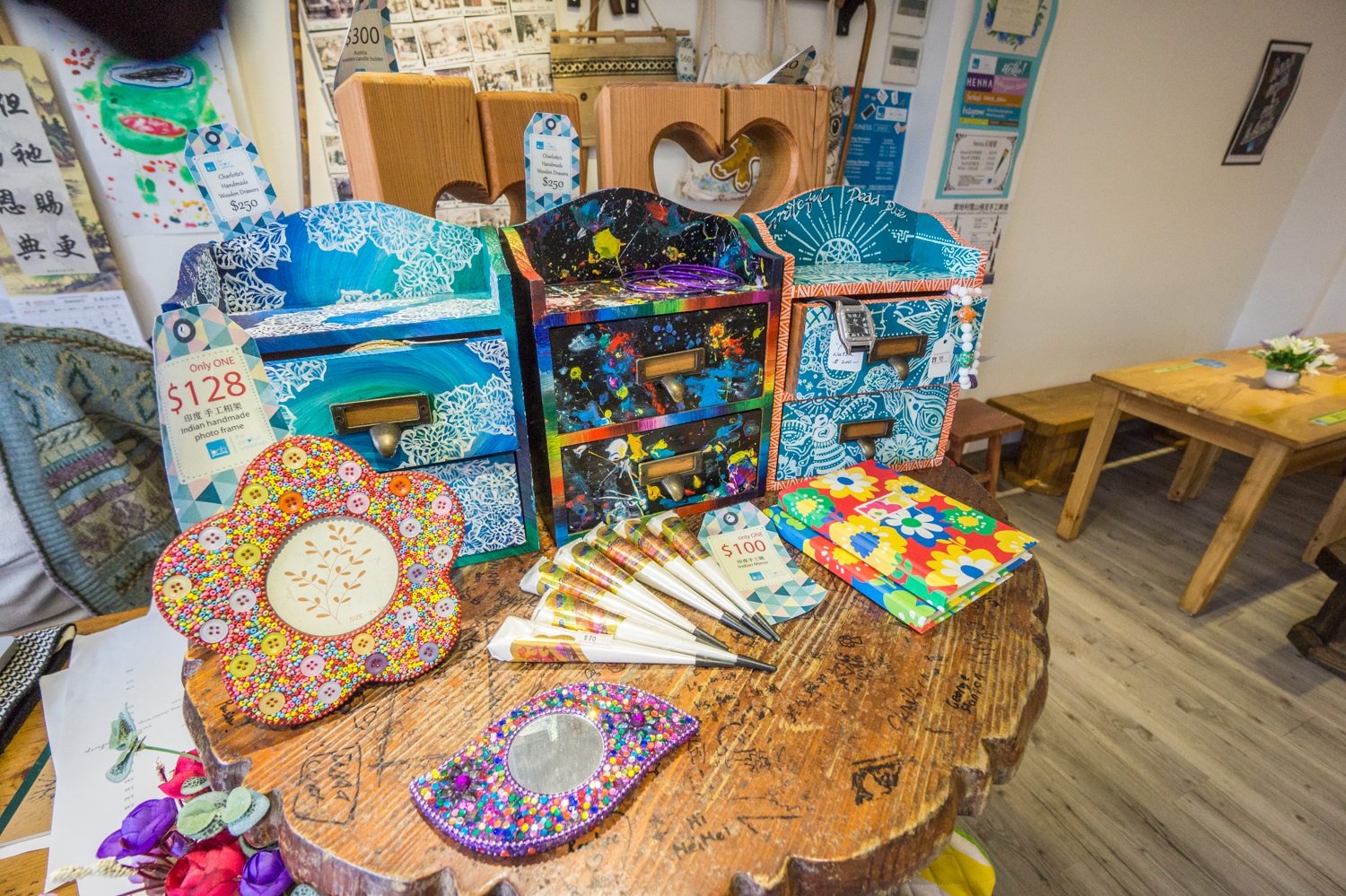 店內環境寬敞,擺放了幾張長桌供客人繪畫心型木牌。