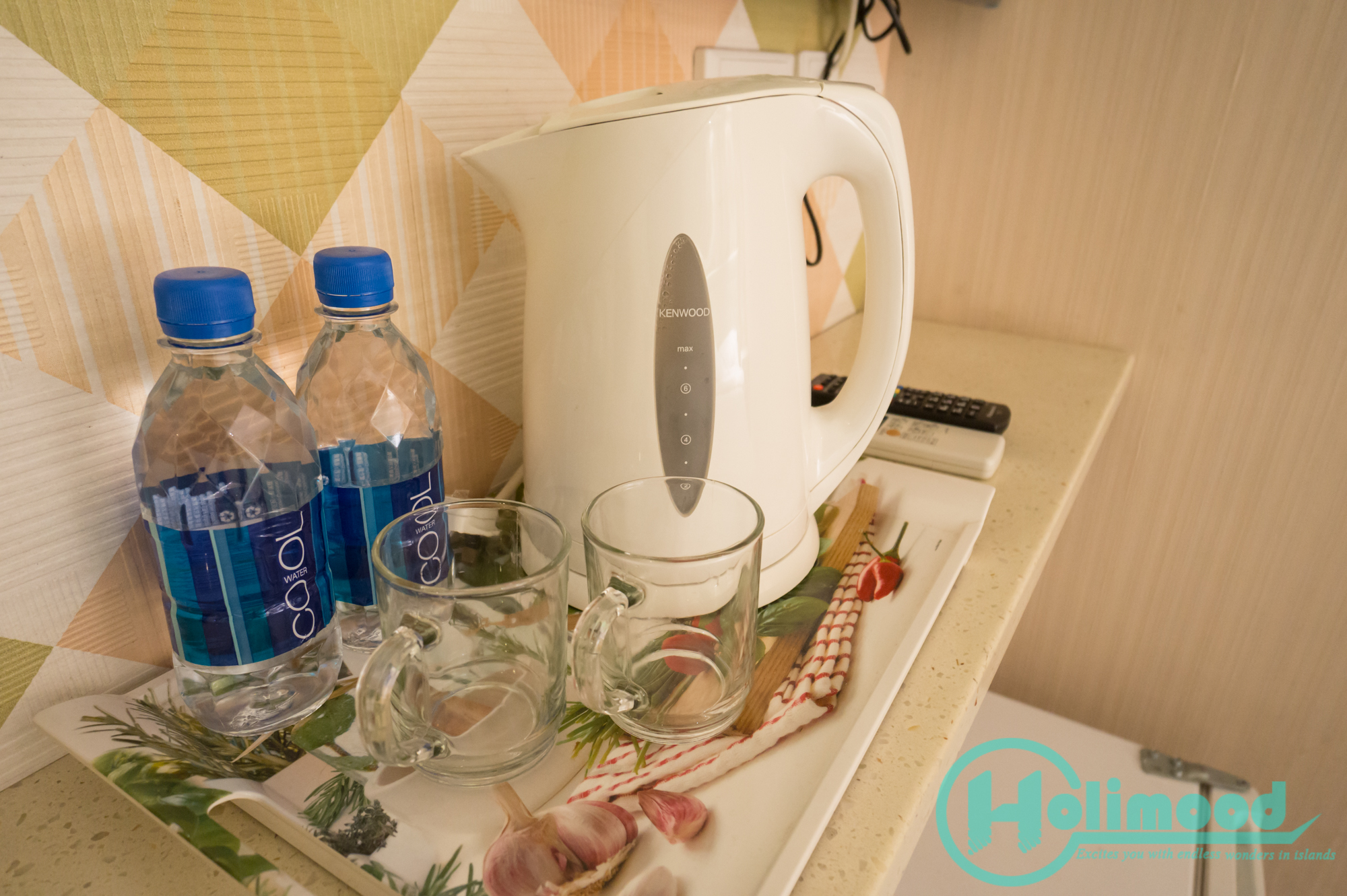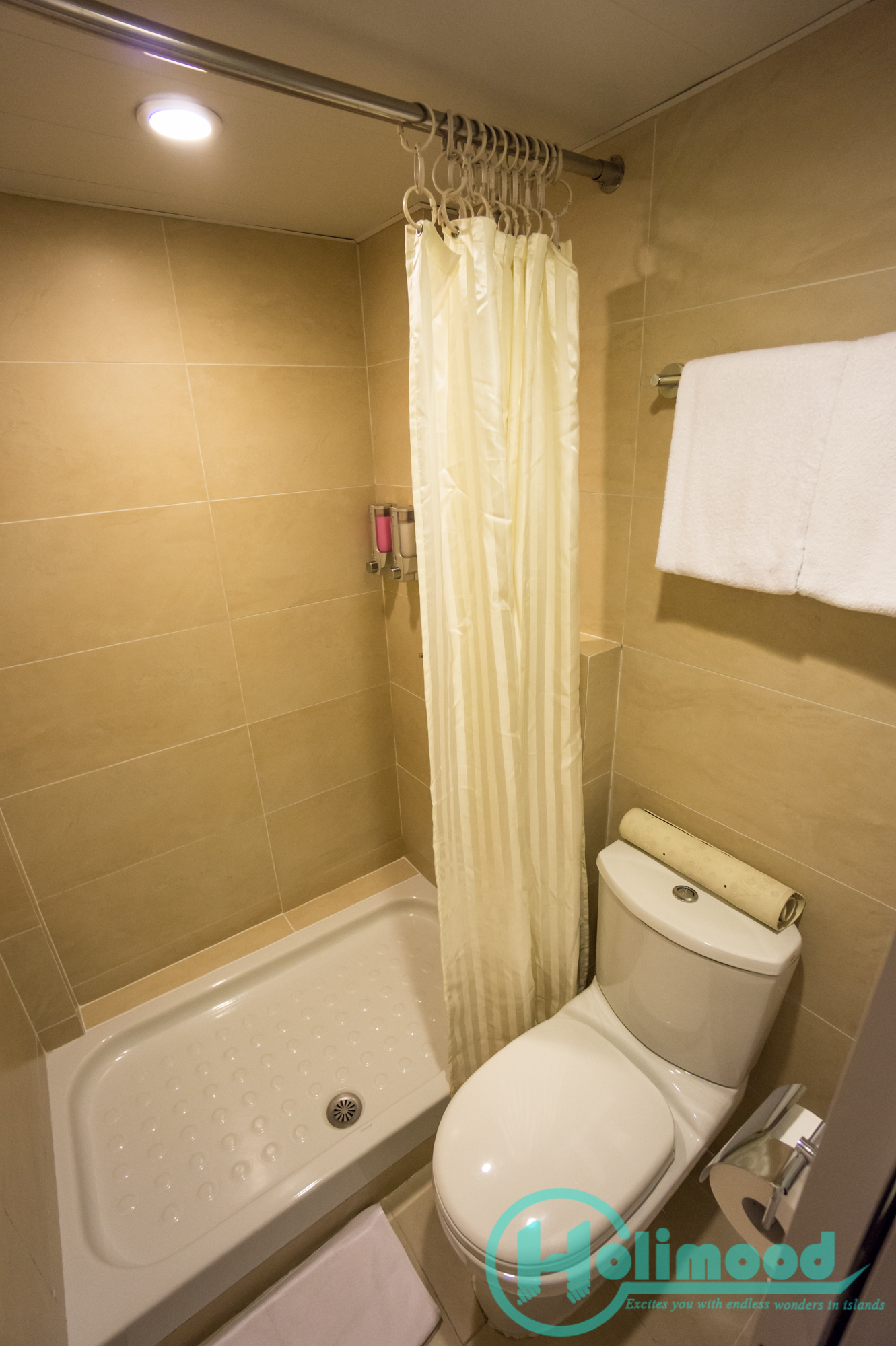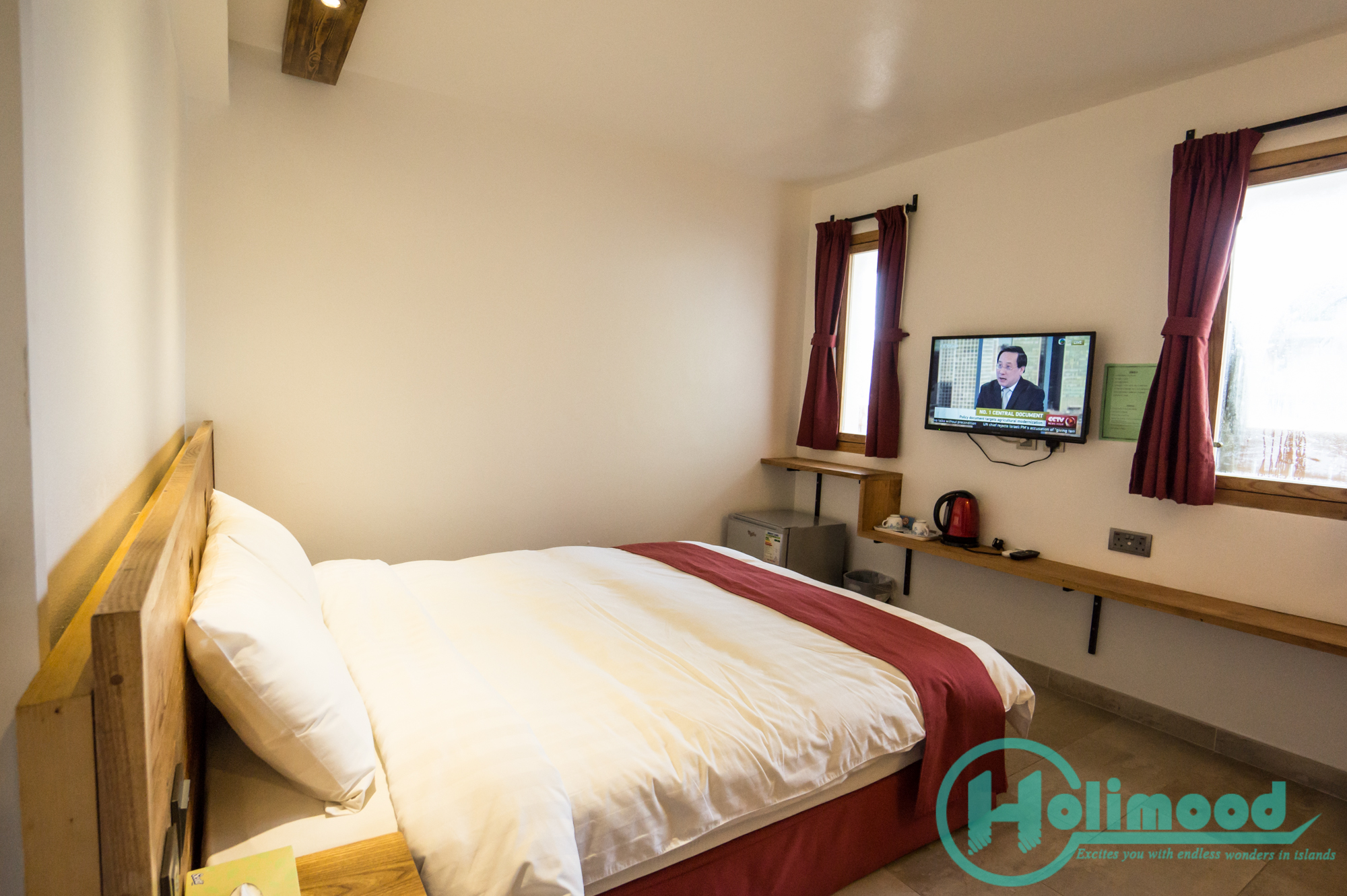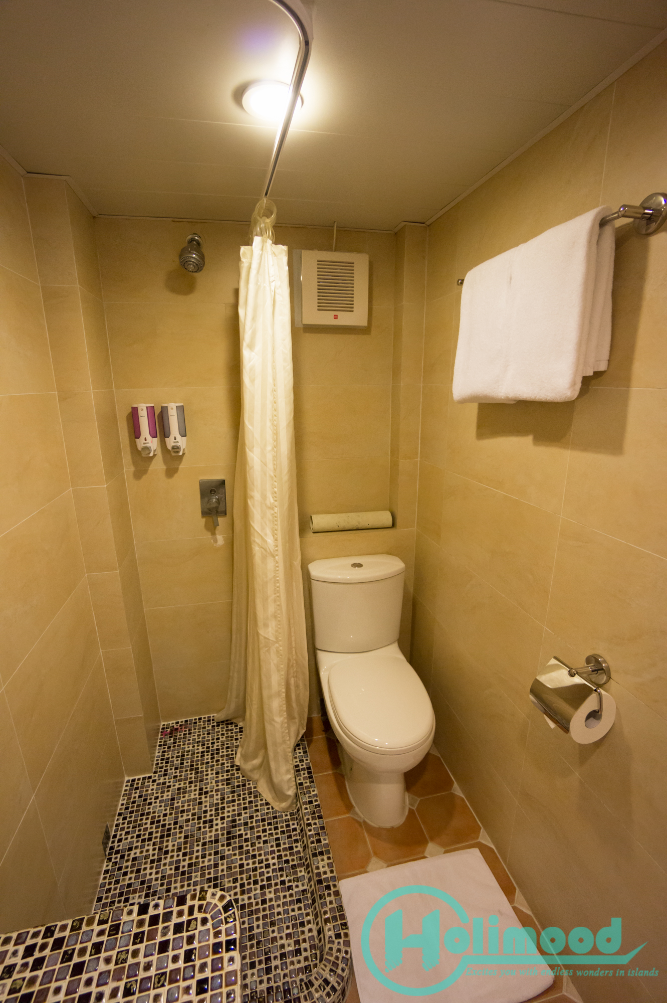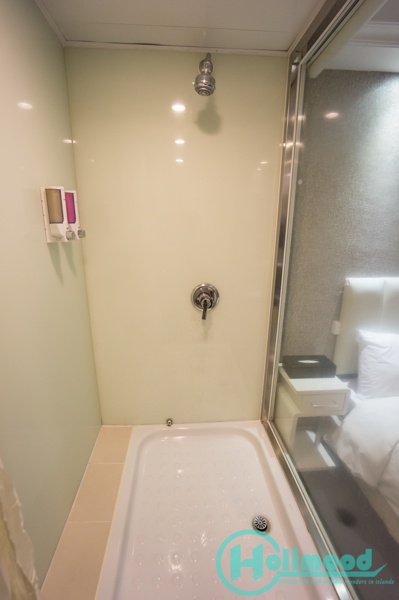標準房的設備基本上與高級房無異,有一個透明玻璃浴室(設浴簾)。而一般渡假屋沒有安排的個人清潔用品,B&B 乜細心照顧周到。牙具,毛巾淋浴露及洗頭水都一應俱全。但標準房的面積是眾多房型中最小的,大約120呎。雙人床的呎吋為4.5 x 6呎。