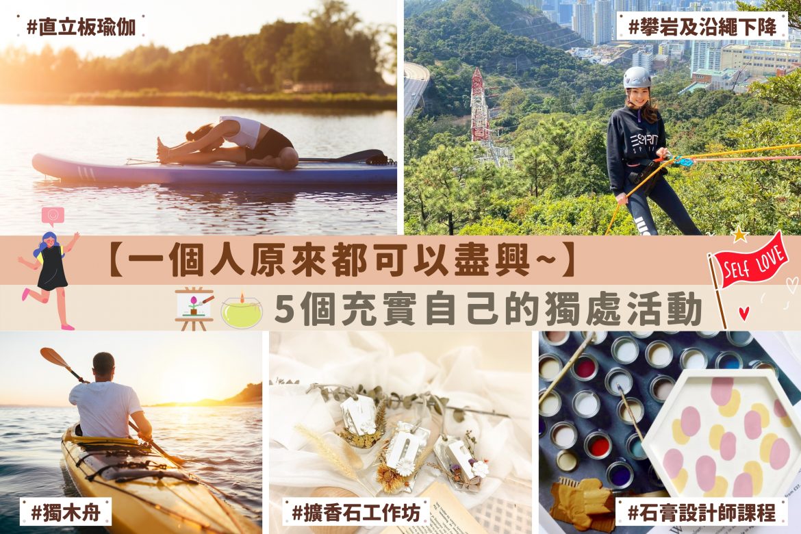 「一個人原來都可以盡興~」一大班朋友一齊玩當然是開心,但你有給自己預留足夠的Me Time嗎?獨處也可以過得很充實!Holimood 小編準備了各種活動給你,例如獨木舟、SUP YOGA、工作坊、攀岩等等,讓你的獨處時間過得更有價值,一人之境也可以很幸福~