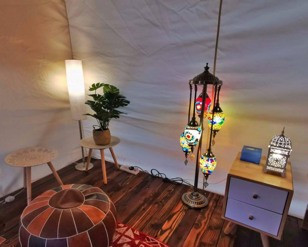每個特色營帳均有冷暖氣、風扇、風筒、電陶爐、電熱水煲,令你有入住5星級酒店的體驗。帳篷外設有戶外空間,空間已進行過杜絕蚊蟲工程,蚊蟲數量大大減少,不怕咬到一噠噠紅豆冰,讓你感受到絕對舒適的露營體驗!