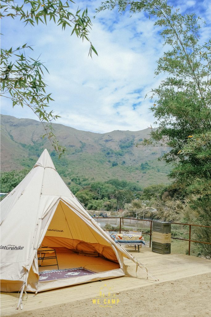 露營區使用印地安帳篷,帳篷底部呈橢圓形,而且有高聳的尖頂,外觀時髦,怎樣拍照也很好看!不只是外型漂亮,內部同樣有內涵,營內舒適,沒有壓迫感!客人可按照情況加租營具,例如露營枱、露營櫈、天幕等,還可額外加購場地佈置服務,使營內環境更有feel!