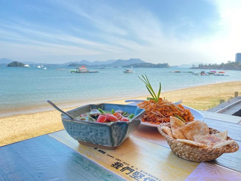 在西貢沙灘旁邊的泰國餐廳,黎到食個景都抵,在大帳篷下坐著,看著一望無際嘅海景,幻想置身在芭堤雅的海邊~尤其是望出去有很多人玩獨木舟和水上活動
