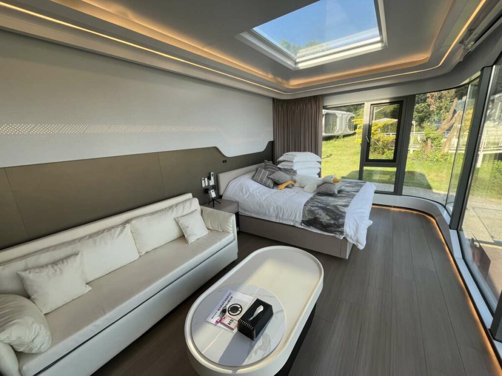 - 【Moon Horizon】蜂窩太空艙:雖然是入門款房型,但最新升級版主打全透明天窗設計,主打室內直接觀星。