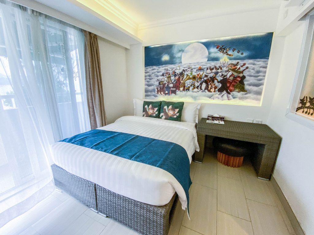 想特別一點,可以選擇加勒比海主題房,房間以海洋為主題,配上藍白海洋風的佈置,恍似置身加勒比海度假一樣。