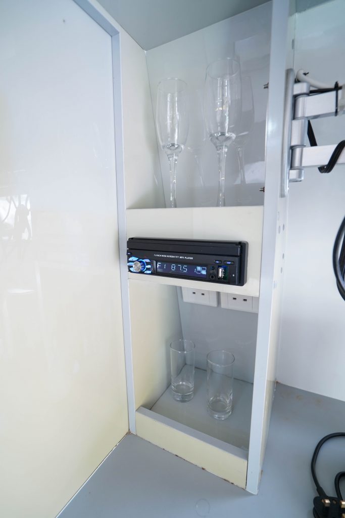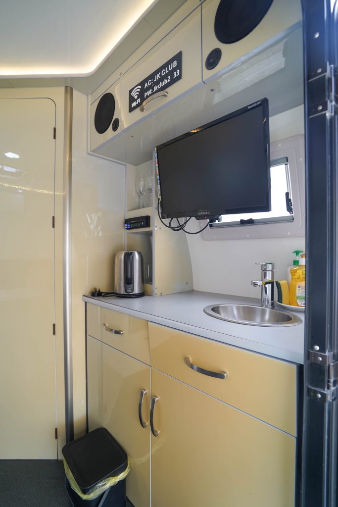 2人露營車雖然麻雀雖小,但五臟俱全! 車內設備足以媲美酒店,有Wi-Fi、電視、雙人床、開放式廚房、雪櫃、冷暖氣系統等,還有獨立洗手間呢~