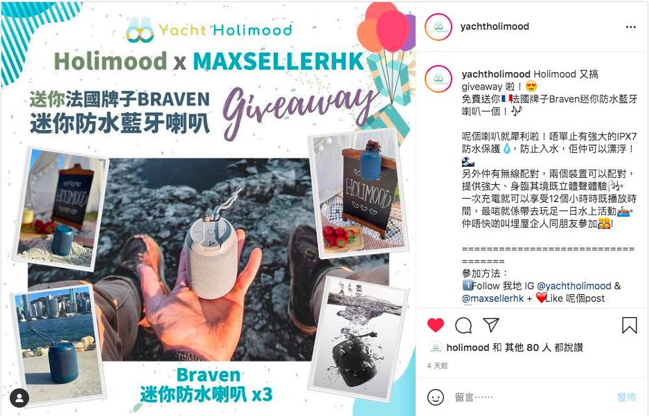 出外玩水上活動緊係想一路玩一路chill住咁聽歌〜個一刻真係會好寫意好enjoy人生。小編自己去船P個陣用過Braven呢個防水喇叭,個陣跌咗落水嚇到心都離一離,點知呢個喇叭又真係好防水,仲會漂浮,好易揾得返,非常適合戶外使用。Yachtholimoood 依家做緊giveaaway大抽獎,抽中就免費送你法國牌子Braven迷你防水藍牙喇叭一個,大家快啲去啦!