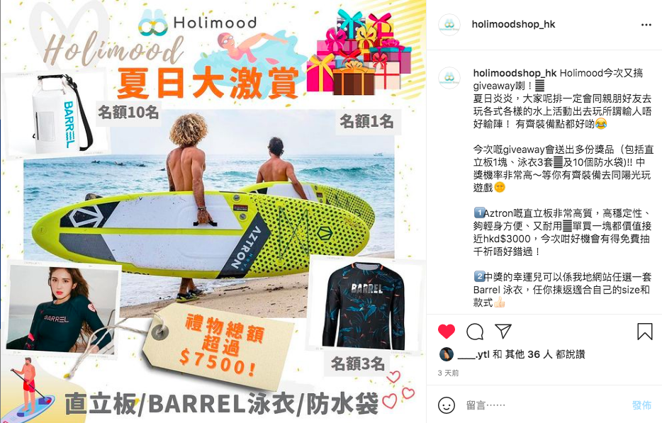 Holimoodshop 依家做緊giveaaway大抽獎,抽中就免費送你Barrel防曬泳衣一件,任你選男/女裝同size,揀啱一件就可以拎走。只要去instagram Follow @holimoodshop_hk 再去留言就得喇。