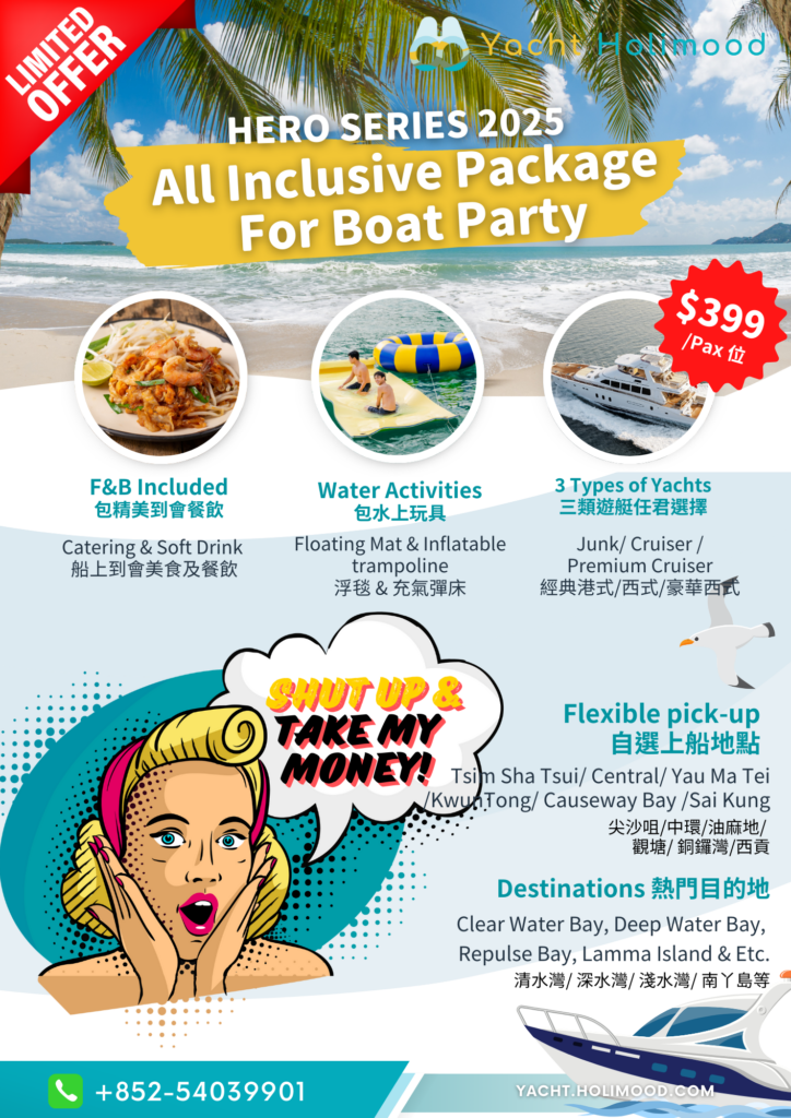【Hong Kong Exclusive】Hero Series All-Inclusive Boat Party Package