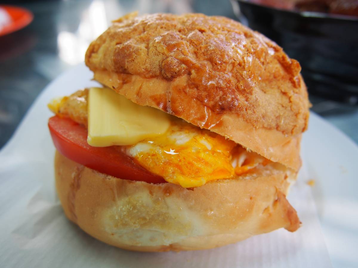 厚切牛油、荷包蛋、蕃茄…配勁脆菠蘿包!好有特色, 好味呀! 食落去仲有蛋黃流出!