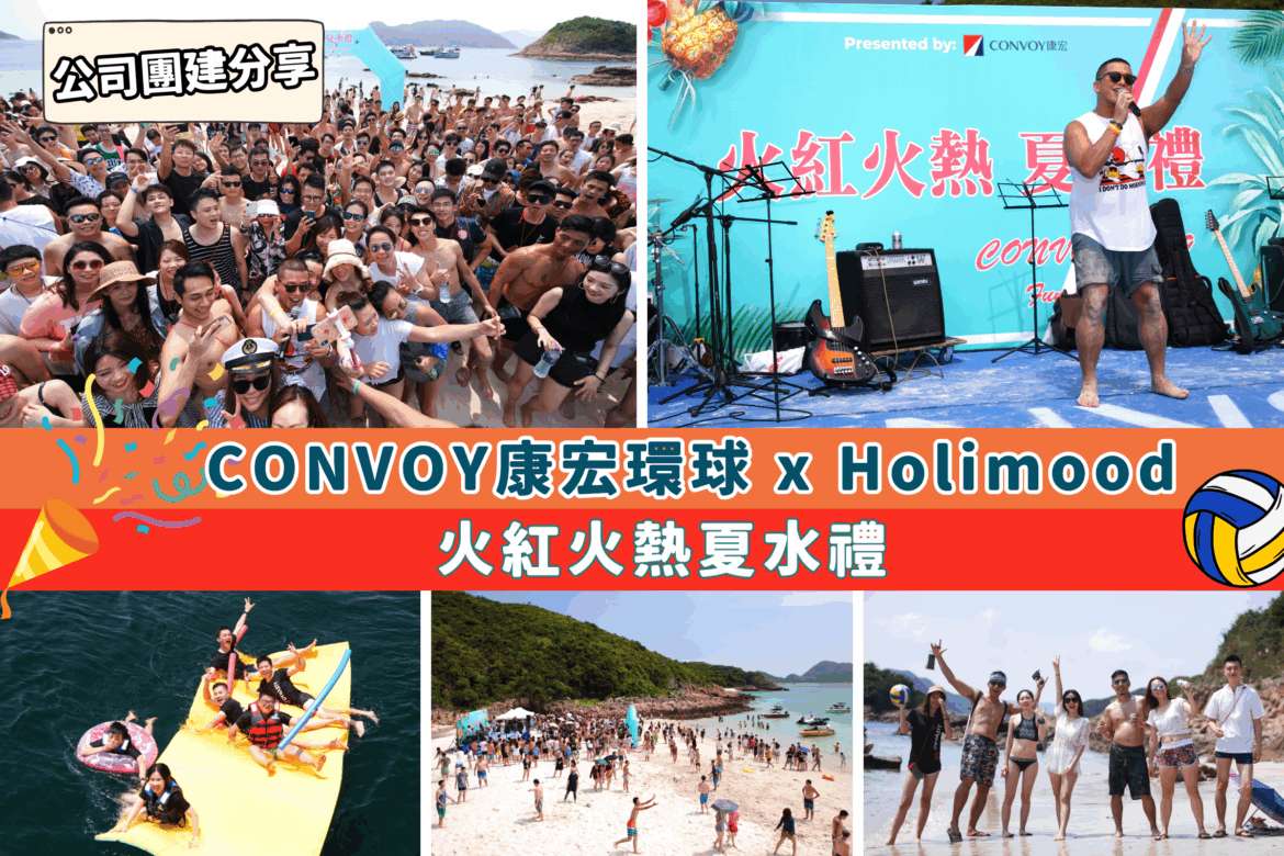 Convoy康宏環球的【火紅火熱夏水禮】,作為一個動員30艘遊艇、逾千名員工參與的大型公司活動和「船P團建」案例,應該近年最大型遊艇派對之一。它證明了在 Holimood 的專業支持下,規模不再是限制,創意可以無限發揮,海上和沙灘都可以成為最棒的團建活動場地。