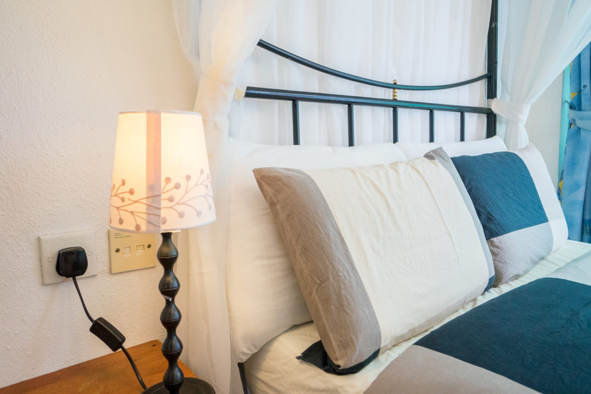 部分房間床架圍有白紗,以為是用來隔蚊嗎 ? 我想是讓人早上一覺醒來就被白紗圍住,除了夢幻,還是夢幻。