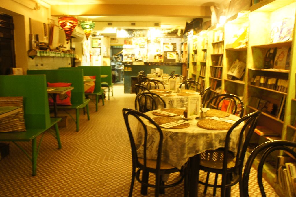 南島書蟲開宗名義是「書蟲」,當然餐廳內的裝修佈置也有如書店,粉飾得很漂亮!店一旁的書櫃上放滿了書、雜誌、南丫島島民的一些作品或資訊等。午饍時間陽光透過窗戶照進店中,給人綠色田園的精神感覺。