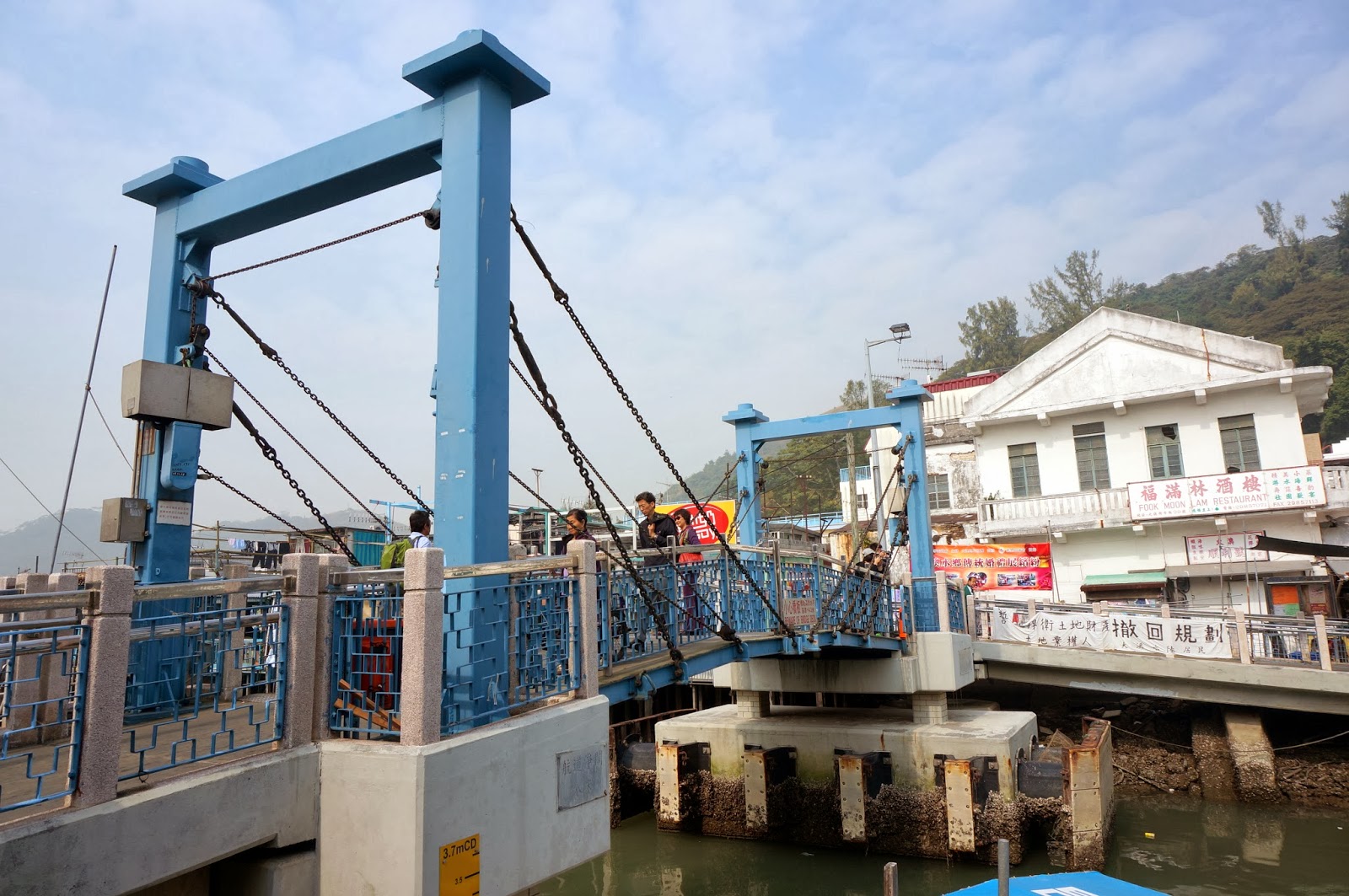 下車後步行約5分鐘到昂坪巴士總站,搭乘21號巴士至大澳巴士總站,車程約20分鐘,下車後步行5分鐘至大涌橋,再沿水道兩旁走。
