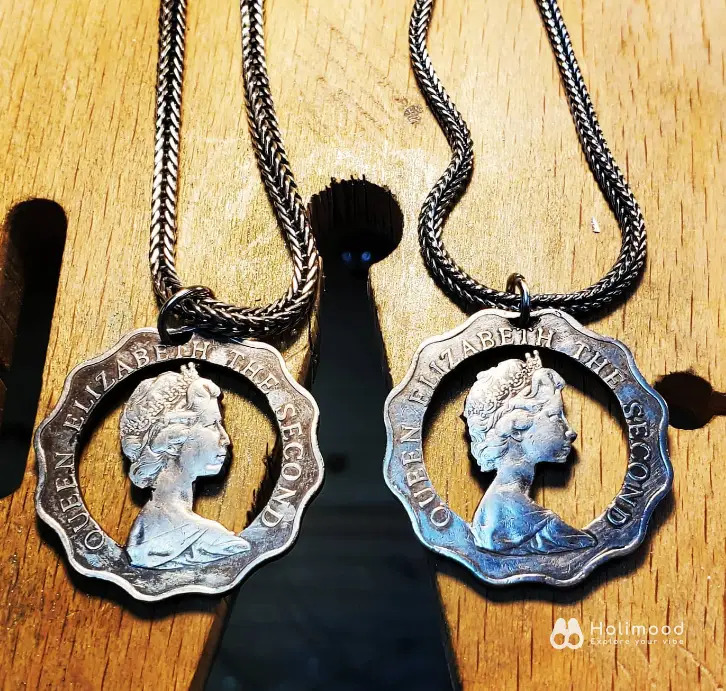 以越來越罕見的女王頭像硬幣製作飾品,別具香港特色。 可以製作成頸鏈,硬幣戒指。