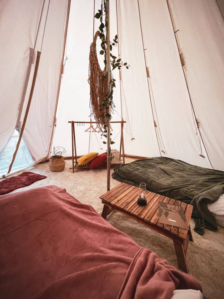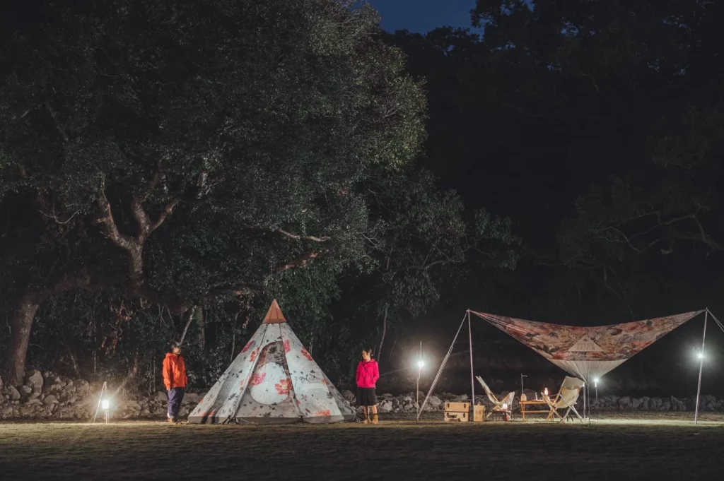 營地中心有一棵巨大嘅原生大樹,充滿原始感。冬天嚟呢度最好,因為佢哋有專屬嘅營火台區。兩個人對住真正嘅篝火谈心,木材燃燒嘅咔嚓聲加上溫暖嘅火光,浪漫指數爆燈。