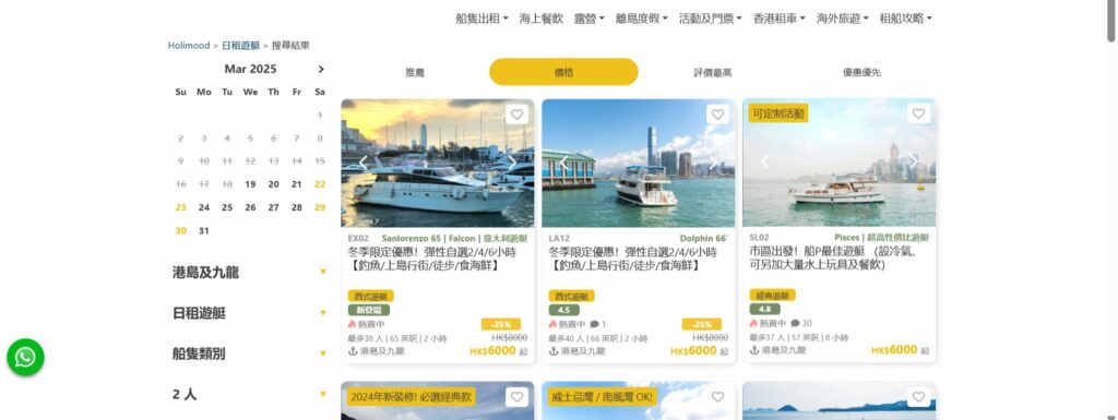 - 進入預訂頁面後,你會看到超過30款遊艇