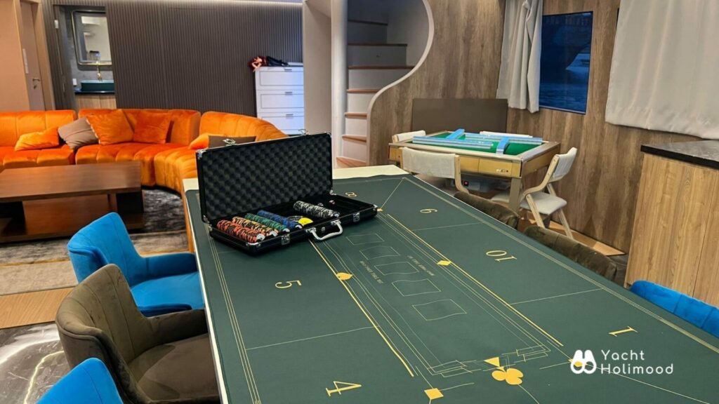 「開枱」是香港船 P 的獨特文化之一。在冷氣充足的船艙內打麻雀,一邊吹海風一邊「食糊」,是特別解壓又好玩的選擇。Holimood 平台上大部分船隻均提供明碼實價的設施列表,預訂時可以直接查看是否有「麻雀」或「唱 K」標籤。