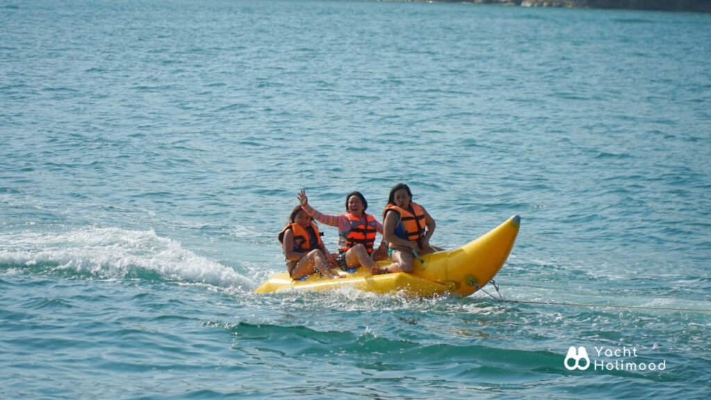 如果你追求心跳加速的感覺,香蕉船是必點項目。這類活動需要額外租用快艇(Speedboat)帶動。香蕉船通常可以同時乘坐3-4人,大小朋友都啱玩。