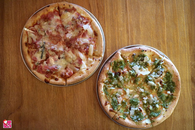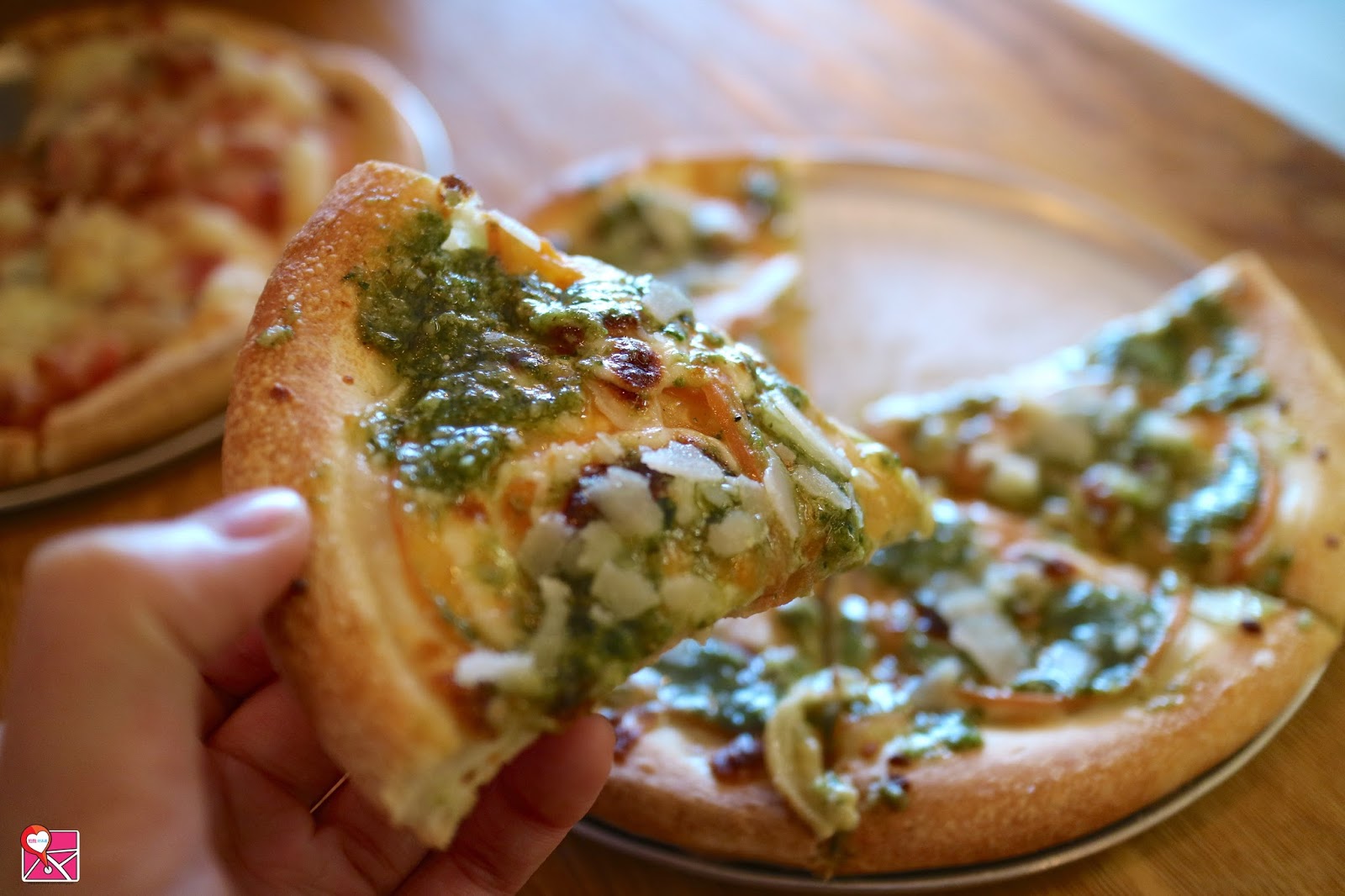 自家製作的麵粉團批底做得很薄且彈牙。Green Monster雖然是素食Pizza,但味道因為有濃厚芝士及羅勒葉香,味道突出。老闆娘說全仗新鮮自家製的Pesto Sauce,令味道可口鮮美。Swanky Hawaiian配料豐富,味道開胃可口。