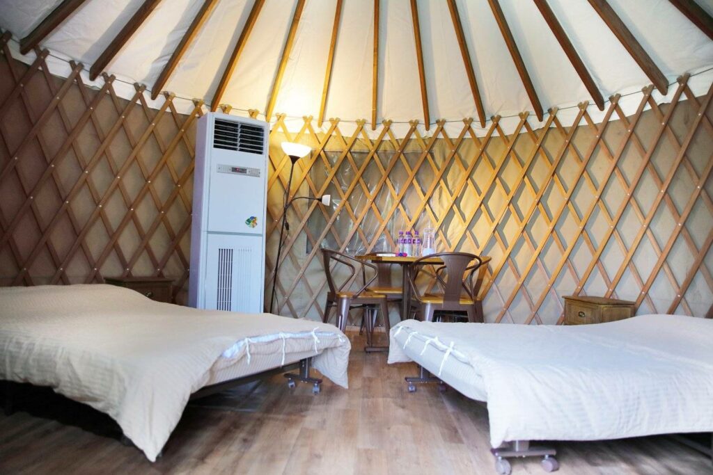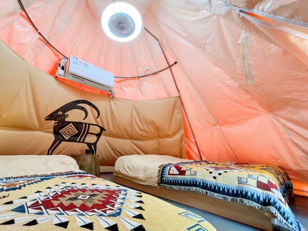 - 特色: 圓形尖頂設計,內部裝飾充滿濃厚的民族色彩。這款營帳通常配備冷氣,而且空間非常寬敞,不用彎腰進出,體驗非常獨特。