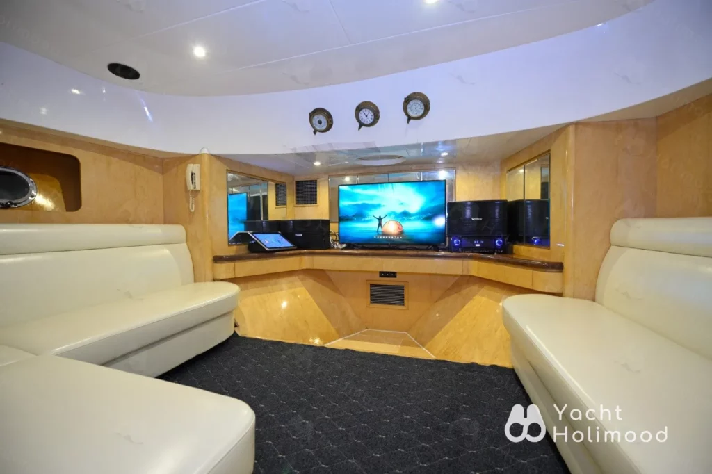 好多人以為遊艇只係得「游水」。其實而家好多大型西式遊艇,例如 AD02 Vitech 75,可以容納 50 人以上,船上配套咗專業嘅卡拉OK房、優質音響,甚至有足夠空間做舞池。