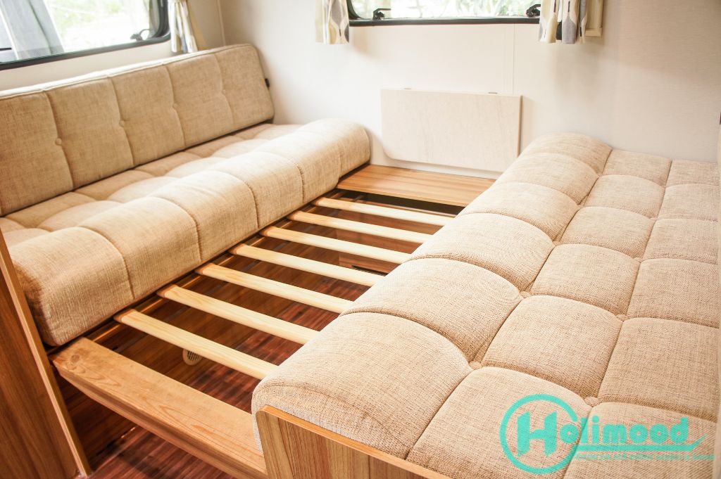 你可能會發現這車上並沒有床,其實床就是藏在梳化附近的牆!