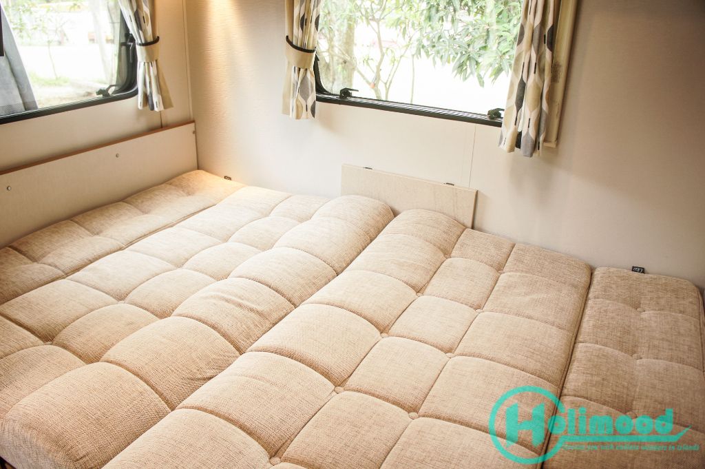 而Caravan X的露營車有六人床位,都是2組梳化床加一張上下格床但安全起見,上下格床只能承載十歲或以下的小孩,則有以下三款