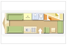 其實三款露營車的外觀差不多,尤其是Caravan S 及 Caravan X (下稱S 及 X). S 及 X的車箱間隔就是兩者最主要的分別。下圖是S的兩種間隔,左圖是MF01 -C3 的平面圖。而右圖則是 MF01 – C4 及 MF01-C2的。如想睡得鬆動一點,建議選擇兩張梳化床的設計,因為兩張梳化向中間拉就會變成一張大的梳化床,會比雙人床寬闊。