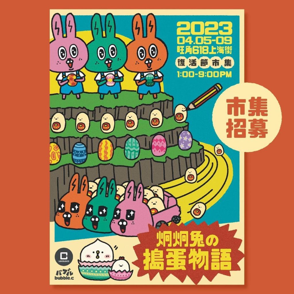 復活節又到啦,今次LOCOLOCO將會同人氣插畫家 @bubble.c_c 合作,於618上海街舉辦「炯炯兔の搗蛋物語· 復活節市集」。市集充滿創意既手作及設計及復活節限定產品!加上618上海街雲集大量文青至愛的特色小店,仲有不小人氣餐廳! 而且地理位置就在郎豪坊附近,十分方便。另外「618上海街」保育活化後保留了10幢戰前唐樓騎樓、支撐整排騎樓的13條麻石柱、麻石柱上的廣告招牌等極有歷史價值的元素,更是原汁原味展現昔日的情景於大家眼前。