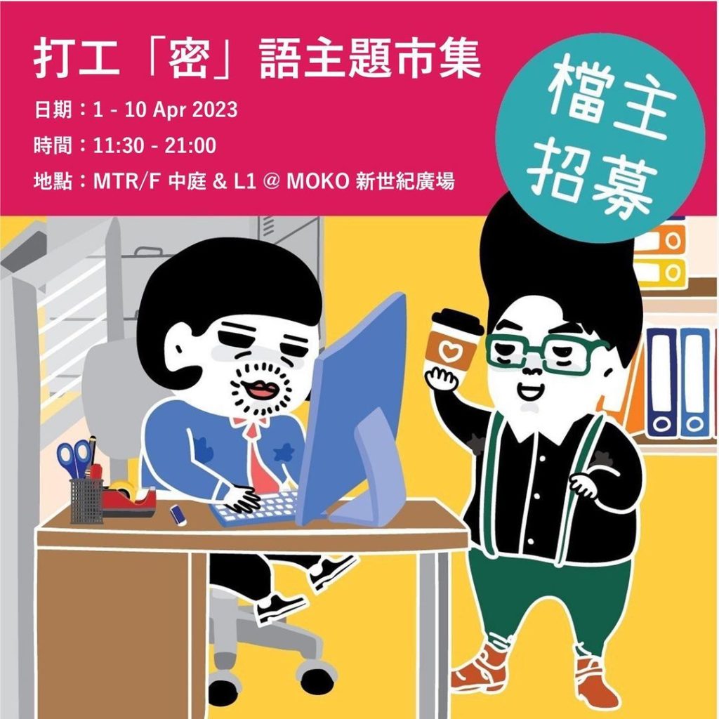 在即將到來的復活節長假期,LOCOLOCO將會去到MOKO 新世紀廣場舉辦打工「密」語主題市集!返工覺得累,唔係因為做嘢,而係要應付啲人。今次市集將會邀請到本地插畫師以作品舒發打工仔心聲,實行同大家一齊普天同㷫,Fun享快樂。