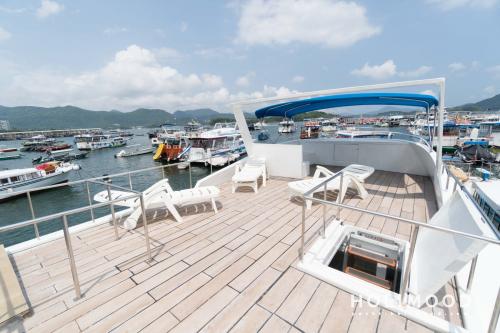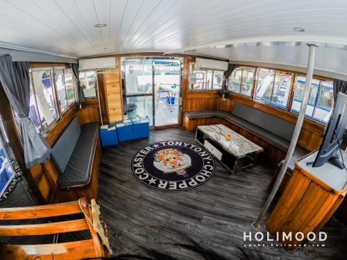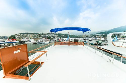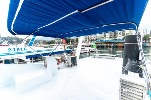 遊艇甲板及內部裝修很精緻,空間極大,打卡和遠觀都一流。船內設有翻熱設施、雪櫃、酒吧枱、室內沖身設施等供客人使用,亦有優質室內及室外音響,和一大班朋友釣完墨魚後在船上唱K、飲酒碰杯都沒有問題!