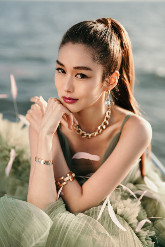 在波光粼粼的海面上,岑麗香身穿一襲淺藍色多層深V薄紗晚裝,優雅地躺在 Lagoon 450F 寬敞的甲板上。陽光、海風與華服交織,構成了一幅動人心魄的畫面。這次合作不僅成功地捕捉了服裝的精髓,更彰顯了品牌的非凡品味。