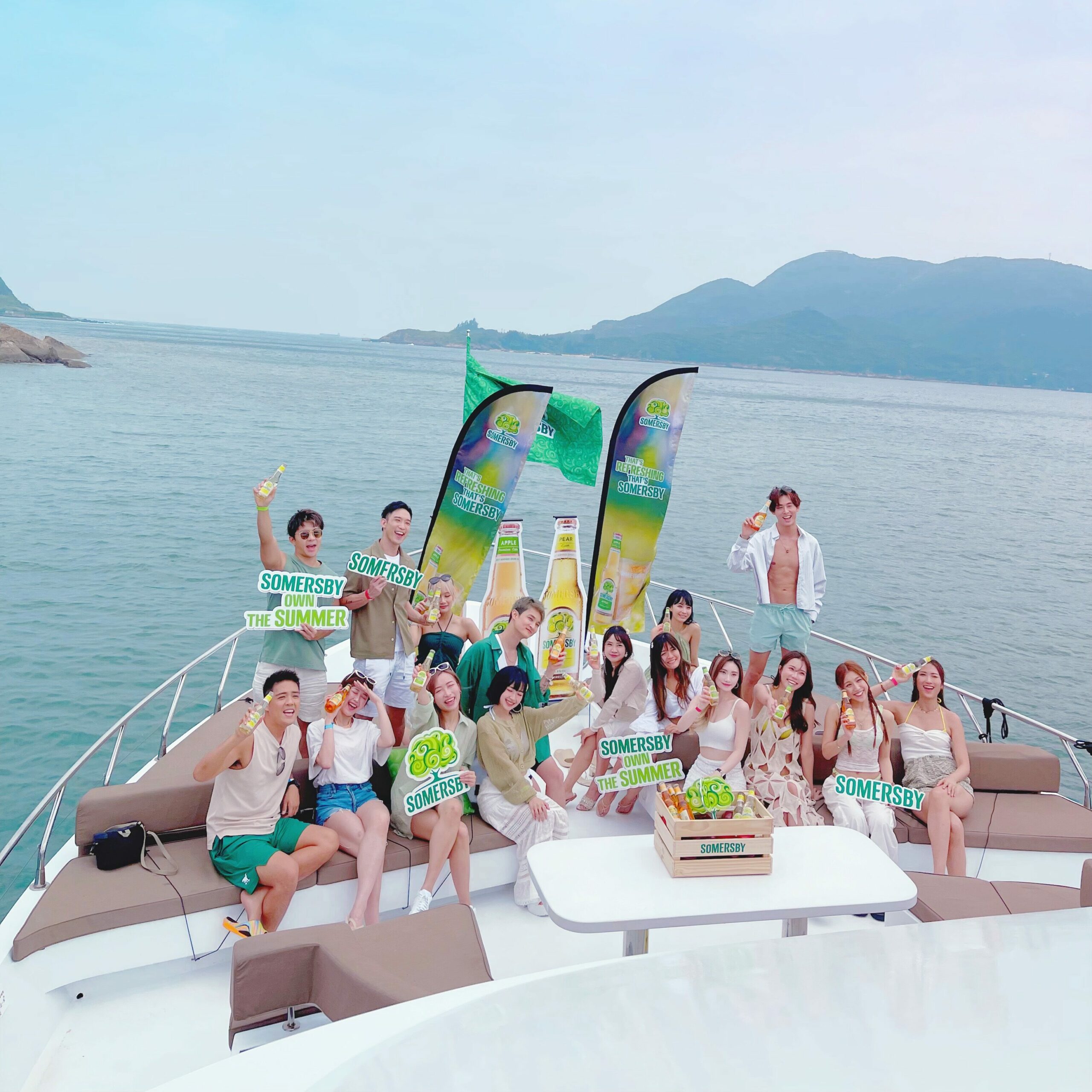 知名汽酒品牌 Somersby 為推廣其「梨味汽酒」和「芒果青檸味汽酒」兩款夏日新品,選擇與我們合作,將 Sunseeker 82 遊艇打造成一場獨一無二的海上品牌體驗之旅。
