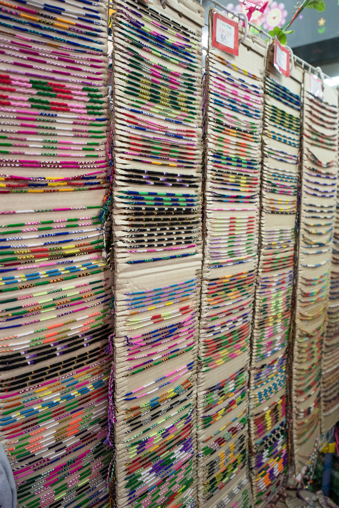 小店主打嘅平安手繩全部由泰國入口,老闆話沖涼游水都唔會甩色,同大陸貨無得比。價錢由$6至$10