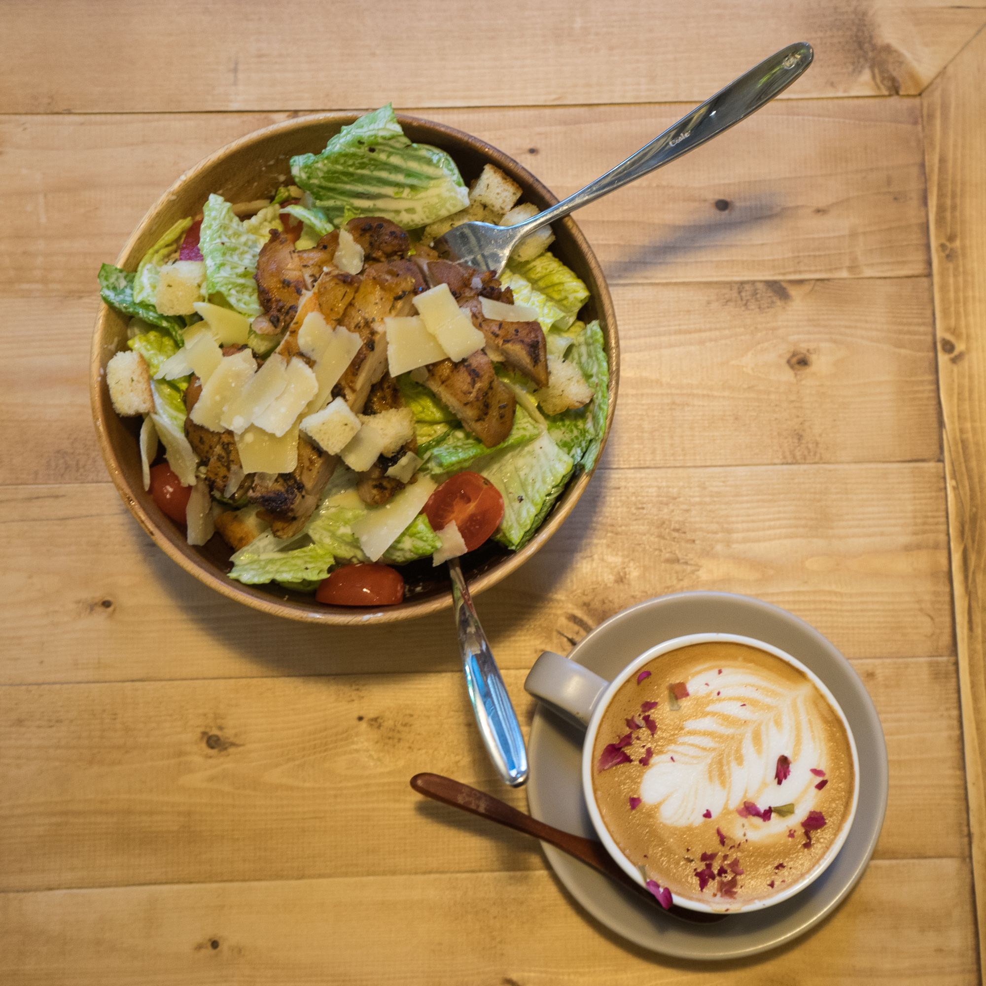 一個人享受寂靜,慢慢享用一份烤雞凱撒沙律、一杯Coffee已經是一日最好的放鬆。注意這裡的食物份量很大,男生吃一份沙律已經有點吃力。