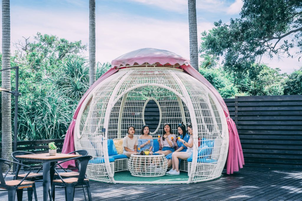 You will soon notice that every corner of the campsite is “Instagrammable”, you could post pictures of the Western-styled pavilion, lounge chairs and sun umbrella.