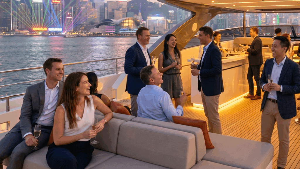 - 破冰神話 (Ice-breaking): 再嚴肅的客戶,上船後被海風吹拂,手持香檳看著中環天際線,也會主動脫下西裝外套與組織者熱聊。大海有一種天然的鬆弛感,能迅速拉近人與人的距離。